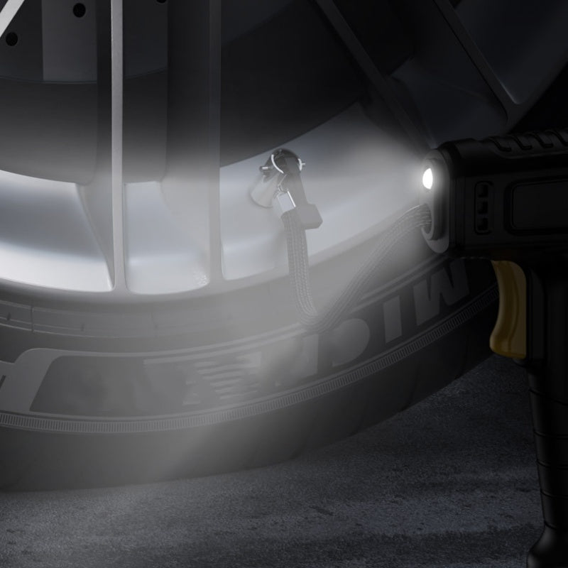 BUILT-IN LED LIGHT - A bright built-in LED light provides clear visibility for night-time operations. Easily locate the valve and safely inflate tyres in the dark or during low-light emergencies without the need for a separate torch.