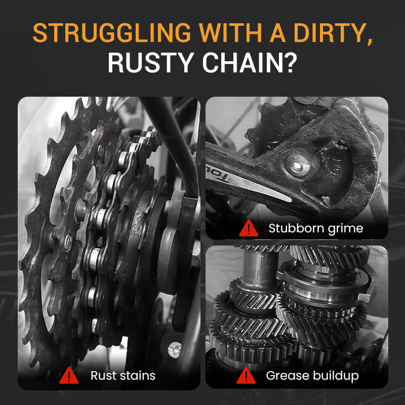 EENVOUDIGE SPROEITOEPASSING: Voorzien van een gebruiksvriendelijke spray voor snelle, nauwkeurige reiniging. Directe toepassing breekt olie en vuil af en richt zich effectief op vervuilde plekken. Maakt routineonderhoud aan fietsen gemakkelijk en efficiënt voor alle fietsers, waardoor er minder tijd en moeite nodig is voor het schoonmaken.