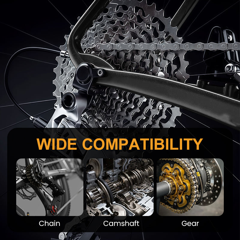UNIVERSELE COMPATIBILITEIT: Geschikt voor mountainbikes, racefietsen en de meeste standaardfietsen. Dankzij zijn veelzijdigheid is hij ideaal voor alle fietsliefhebbers en zorgt hij voor een effectieve reiniging van kettingen en versnellingen van verschillende soorten fietsen, zonder dat dit ten koste gaat van de prestaties of veiligheid.