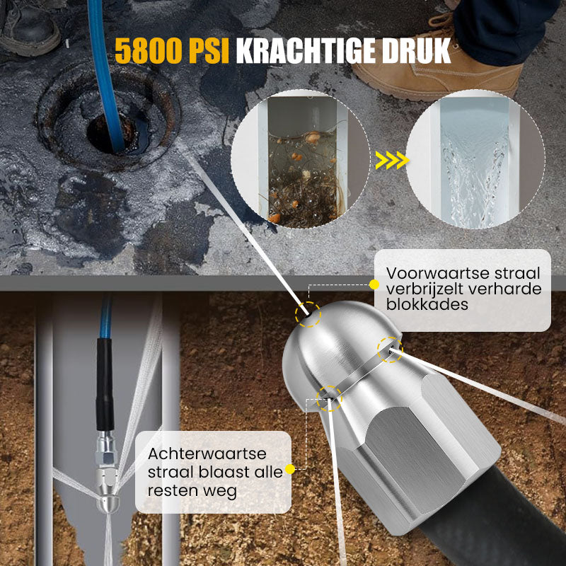 🚿 5800 PSI rioleringsreinigingsset – Draaiende mondstuk en versterkte slang voor het ontstoppen van leidingen 🛠️✨ – Gratis verzending